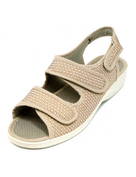 Sandalia fantasía lona rejilla licra. Cierre doble velcro. Piso goma anatómico.