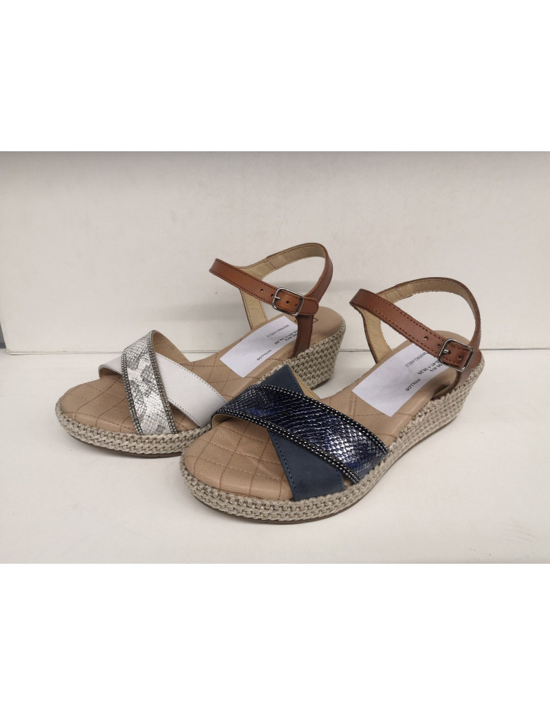 Sandalia fantasía piel de tiras. Planta piel acolchada efecto gel. Piso de cuña forrada. Forro on steam