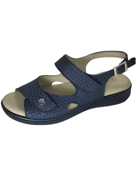 Sandalia piel honey laminada con velcros. Piso cuña confort.