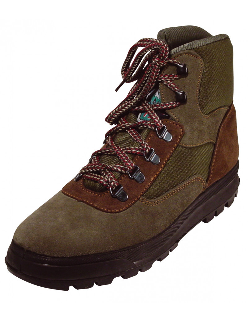 Bota clásica de montaña-trabajo. Fabricada en cordura y serraje. Piso de caucho vulcanizado antideslizante.