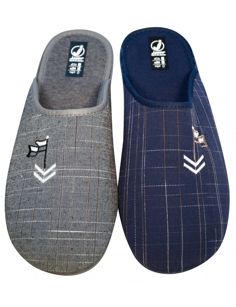 Chinela lona tramas con bordado. Piso goma vulcanizado.