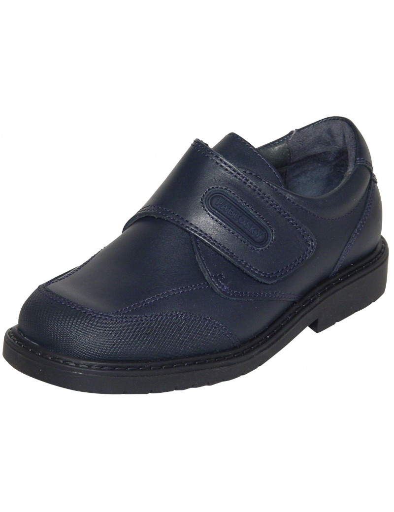 Zapato colegial piel con velcro. Refuerzo de goma en la puntera. Forro y plantilla on steam. Piso de goma.